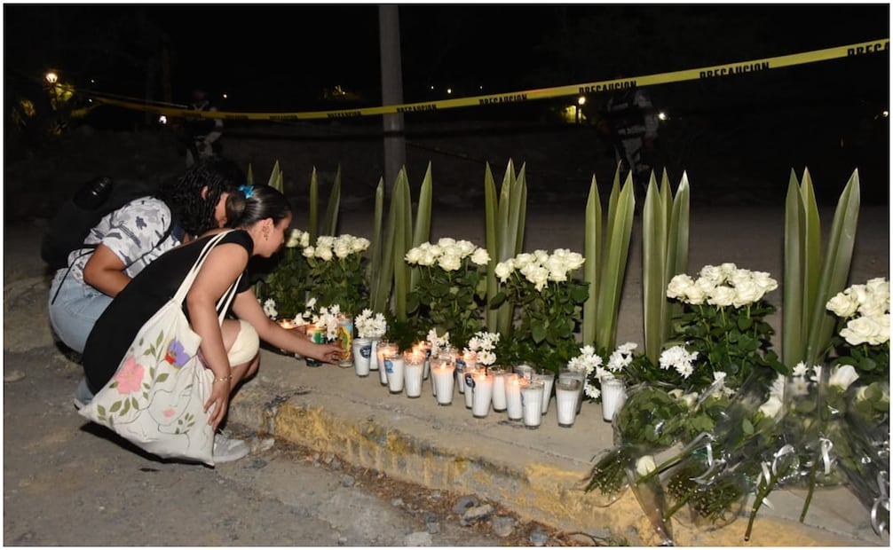 Al lugar, que se encuentra resguardado por un fuerte dispositivo de seguridad integrado por elementos estatales y la Guardia Nacional, también llegaron jóvenes, familiares y otras personas a colocar veladoras y objetos de las personas que perdieron la vida el miércoles pasado.