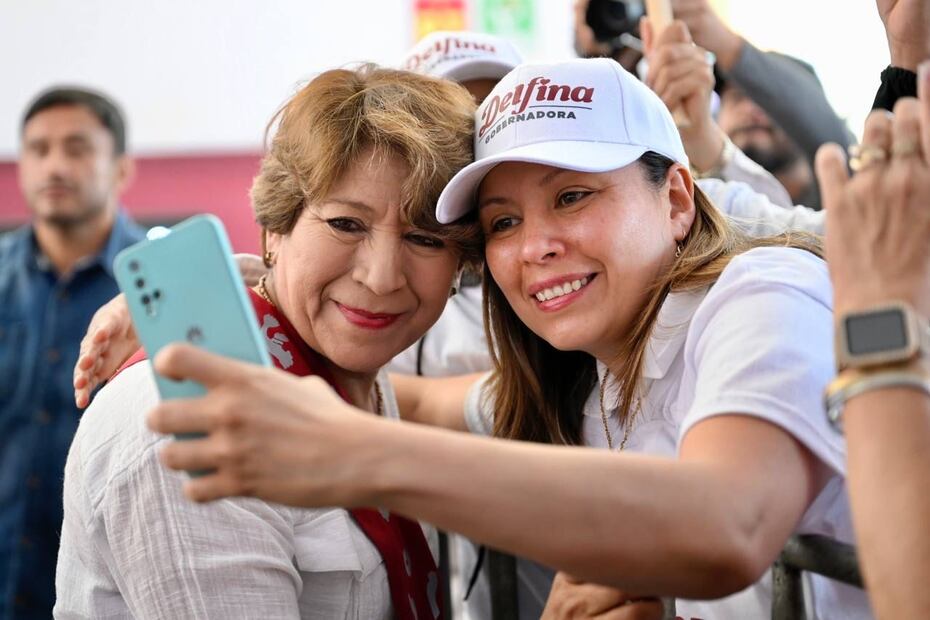 “Ya no más violencia. Ya no más feminicidios en nuestra entidad. ¿Y qué tenemos que hacer? Por un lado, sensibilizar a toda la sociedad a que debemos respetar a nuestras mujeres. Vamos a darle un aplauso a todas nuestras mujeres”, afirmó la candidata morenista Delfina Gómez mientras los gritos de apoyo y los aplausos continuaban bajo la lona que detenía la lluvia.