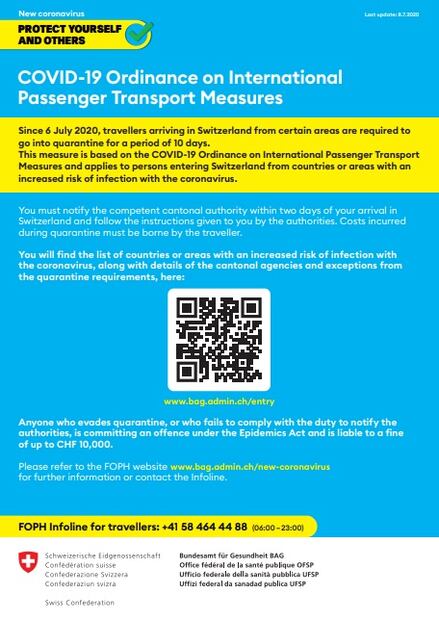 Then, they must report their arrival to the cantonal authority responsible within two days and follow their instructions. For 10 days after their arrival in Switzerland, they must stay in their homes or other suitable accommodation without going out and avoid contact with other people.