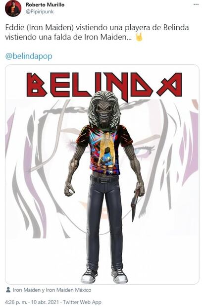 El look de Belinda en el programa de TV Azteca ha dado de qué hablar entre los cibernautas, la semana pasada, un vestido con detalles de la banda de heavy metal Iron Maiden desató una lluvia de memes, críticas y apoyo hacia la cantante, tanto que hasta tomaron una portada de la banda y la adaptaron para que aparezca el nombre de ella y la leyenda “The number of sapito” en lugar de “The number of the beast”, haciendo alusión a la canción de Belinda en una telenovela.