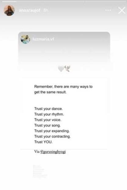 Se trata de dos imágenes, subidas el día de ayer, que Araujo compartió luego de que otra usuaria de Instagram publicara en su cuenta, en la que se pueden leer las siguientes frases: