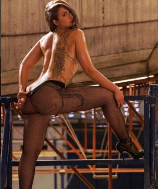 La modelo portó únicamente unas medias de red que bajó un poco, por lo que era posible ver parte de su trasero.