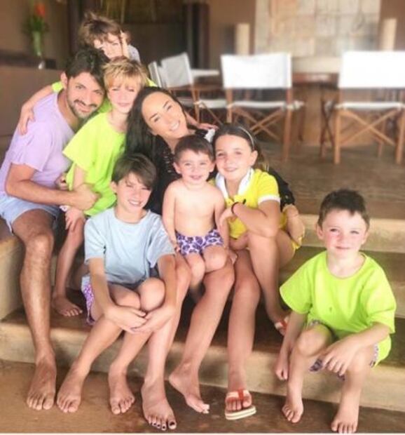 A través de un mensaje que acompañó con una fotografía con sus seis hijos, ( incluyendo a Mayito, hijo de su esposo) y junto a su esposo Víctor Álvarez, Mont, de 34 años, reveló que se encuentra muy contenta con esta noticia, ya que desde pequeña soñó con tener una familia grande.