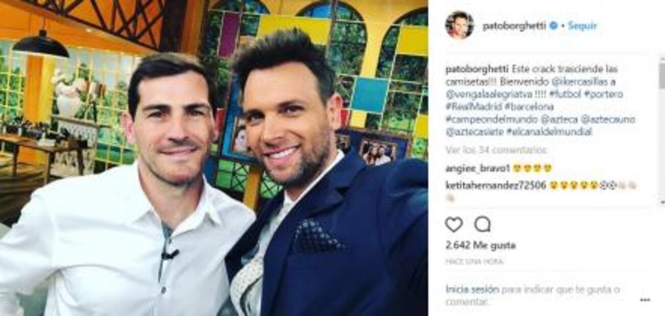 Ingrid Coronado no dejó pasar la oportunidad y posó junto al ex arquero. "Yeiiii!!!! Padrísimo tenerte con nosotros en @vengalaalegriatva@ikercasillas !!!!", escribió.