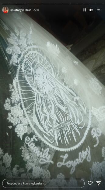 Ella llevaba un minivestido blanco con corsé y un velo largo hasta el suelo con un diseño gigante de la Virgen María en el costado. Él, un traje negro. Ambos fueron diseñados por Dolce & Gabbana, según la revista People.