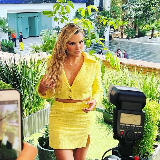 La actriz lució un conjunto de minifalda y chaqueta amarilla de la tienda A la Mode y zapatos de Gran Vía. El look dejó ver el largo de sus piernas y cautivó a los presentes y a los internautas. “Te mereces todo el éxito del mundo”, “Tan hermoso te queda el amarillo”, “Una verdadera belleza de mujeron super guapísima te ves fantástica”, son algunos de los mensajes que pueden leerse en la publicación de Marjorie.