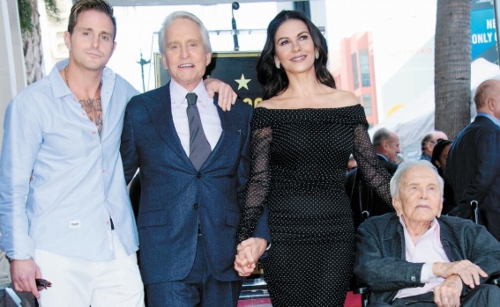 Cameron Douglas, Michael Douglas, Catherine Zeta-Jones y Kirk Douglas. Foto: VALERIE MACON / AFP, archivo