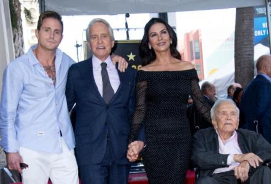 Douglas, de 74 años y famoso entre otros por su papel como Gordon Gekko en Wall Street -interpretación que le valió un Oscar-, estuvo acompañado por su centenario padre, su esposa y también actriz Catherine Zeta-Jones , y su compañera de elenco en The China Syndrome , Jane Fonda .