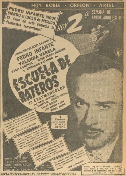 Infante actuó en más de 50 películas y su voz apareció en más de 300 grabaciones musicales, pero al ser sorprendido por la fatalidad de un accidente aéreo, no alcanzó a ver estrenadas tres de sus cintas: “Pablo y Carolina”, “Tizoc” y “Escuela de rateros” ; a pesar de que estos filmes se estrenaron ya no existiendo Pedro Infante, fueron muy bien recibidas por el público, quienes las mantuvieron en cartelera por varias semanas.