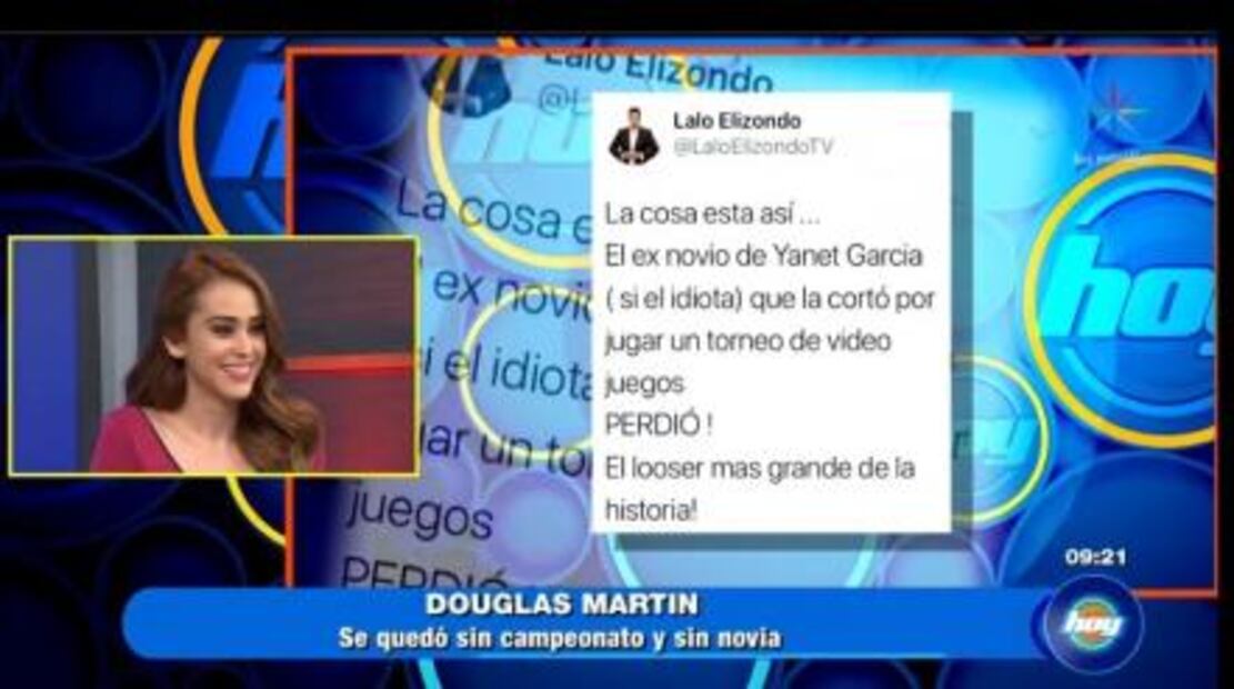 En el programa "Hoy" prepararon una cápsula en la que recapitularon la historia de amor de Yanet y Douglas, hasta llegar al truene y a la derrota de Martin, quien dijeron, "se quedó como el perro de las dos tortas".