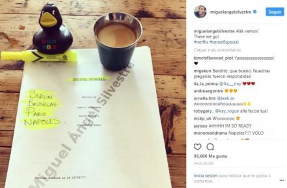 Así lo ha desvelado el propio actor español, Miguel Ángel Silvestre, publicando en su perfil de Instagram la fotografía del guión del especial de Sense8. Una imagen más reveladora de lo que parece, teniendo en cuenta que se revelan las ciudades en las que tendrá lugar la acción: Berlín, Bruselas, París y Nápoles.