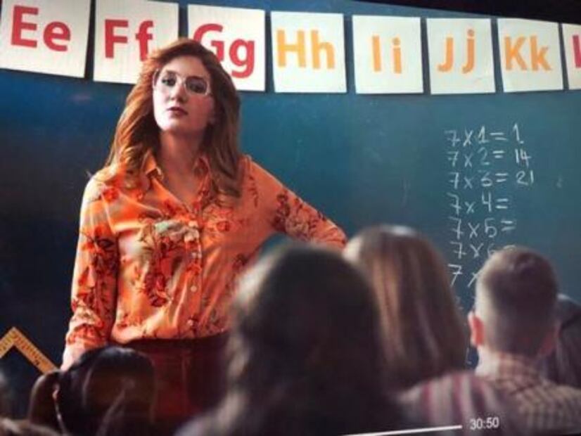 Y también llamó a atención una escena donde aparece una profesora impartiendo clase, pero con un pizarrón al fondo donde se lee que 7x1 da como resultado “1”, lo que provocó que en redes sociales se difundieran "memes" al respecto.