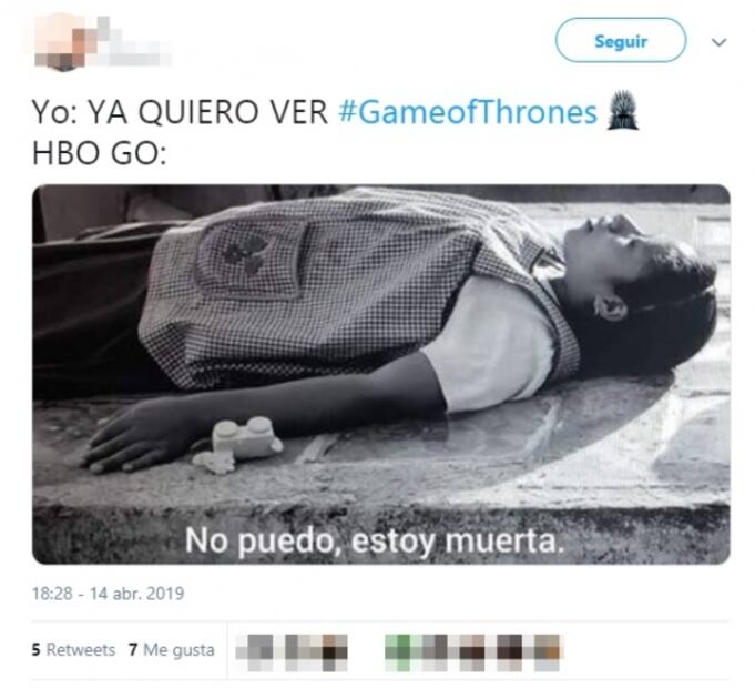 "Si tuvieron dificultades accesando a HBO GO en América Latina, favor de conectarse al chat en vivo en help.hbogola.com", informó la cuenta de HBO en Twitter.