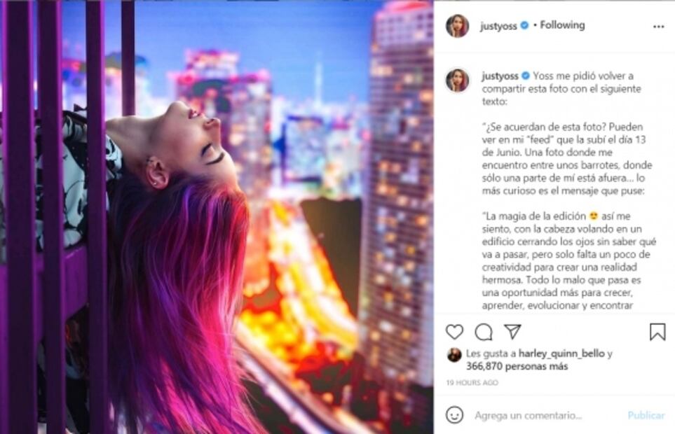 El mensaje, ahora que se encuentra dentro del reclusorio de Santa Martha Acatitla cobró un nuevo sentido para YosStoP, quien explicó en su reciente publicación que es un mensaje de la Yoss del pasado para la del presente para recordarle que todo lo malo que pasa es una oportunidad para crecer, evolucionar y encontrar nuevos caminos.