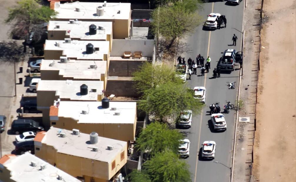 Hermosillo, Sonora.- Durante operativo coordinado apoyados vía aérea por el grupo EscuaDrones, elementos de la Policía Preventiva y de Tránsito, arrestaron a dos hombres, quienes al parecer hirieron con arma de fuego a una persona.