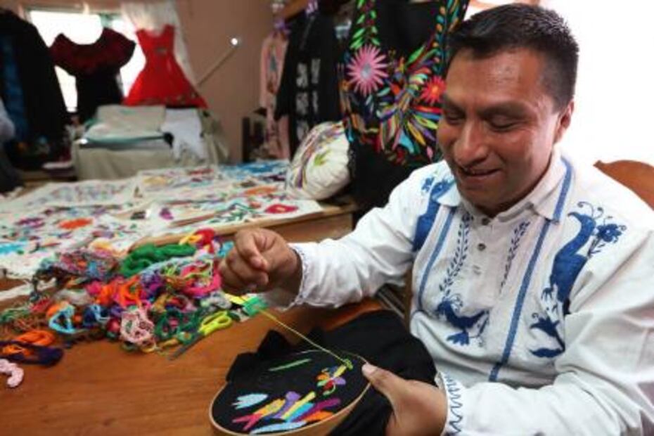 De niño, dice, su madre le enseñó a bordar: “Un día se enojó porque gastaba las hojas del cuaderno para dibujar, entonces me dio un pedazo de manta y me puso a bordar”. Desde entonces no ha soltado la aguja. “Ahora hay más hombres que se dedican a bordar y es muy normal. Nunca recibí burlas, pero si sé que en otros lados es hasta mal visto, sobre todo entre los jóvenes como yo”, dice.