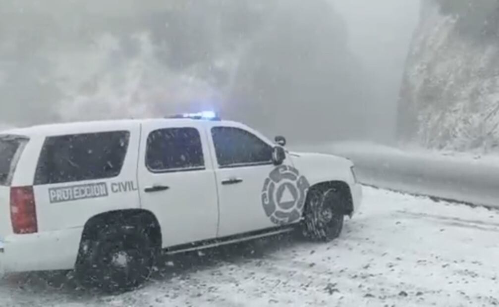 Hermosillo.- Ante una intensa nevada que se registra en la región noreste del estado, autoridades de los tres niveles de gobierno, cerraron el tránsito vehicular entre Sonora y Chihuahua.