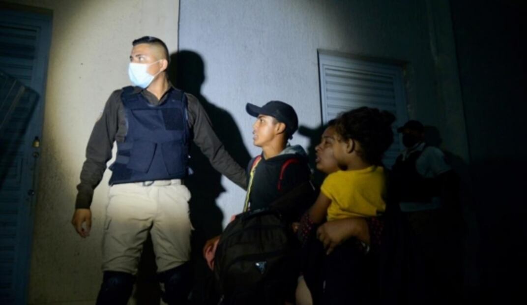 Mujeres con sus hijos fueron los primeros migrantes en ser detenidos, mientras los hombres huyeron al río y el monte hasta donde fueron perseguidos por los policías.