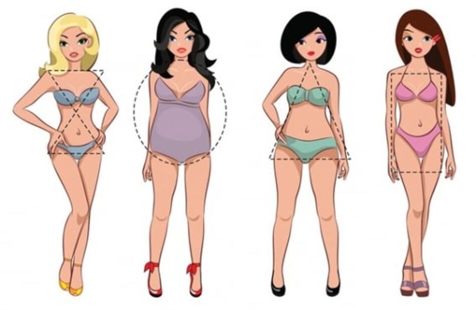 Básicamente, el cuerpo femenino se puede dividir en cinco categorías: manzana , pera , triángulo invertido , rectángulo y reloj de arena .