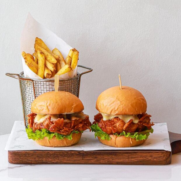 Calienta los panes, unta mayonesa, y coloca la lechuga, la cebolla y el pollo frito. Puedes acompañar de salsa picante.