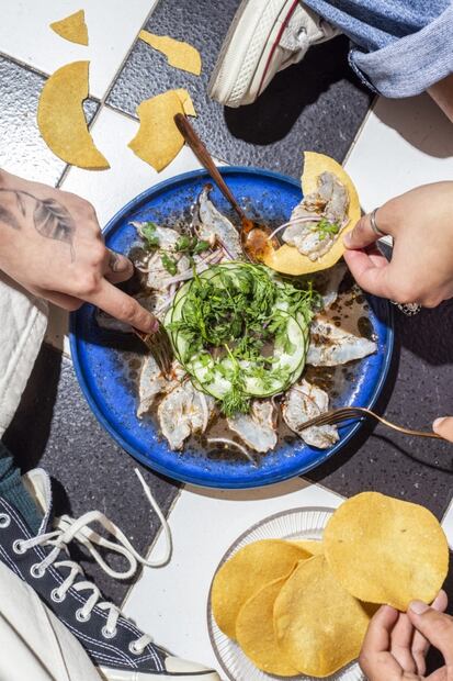 Los ceviches y aguachiles no deben faltar, pero la cocina de Costela no está encasillada. Hay combinaciones que envuelven al paladar en placer, como las garnachas, nombre que le dieron a unos tacos dorados rellenos de papa que nadan en aguachile verde de camarón, o el sope de maíz azul con pulpo adobado, que se deshace en la boca al hincarle el diente.