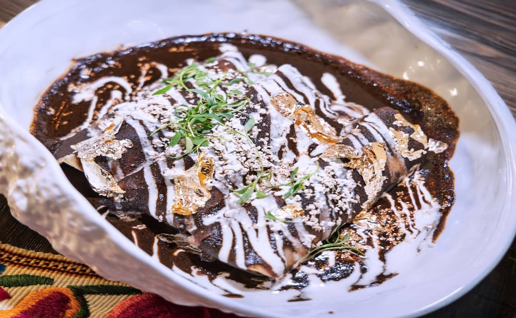 Desde luego, también se ofrece salmón a la talla, pulpo al carbón, y cosas más sencillas como el filete de res. Sin embargo, de tener la oportunidad, se recomienda ampliamente probar sus "Enchiladas de oro negro", rellenas de cranitas y bañadas con mole negro.
