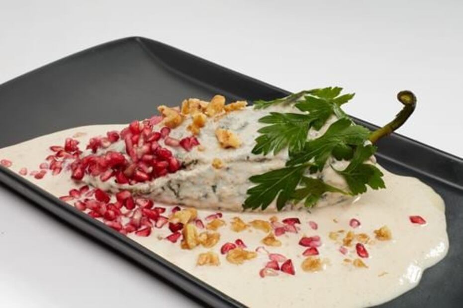 Para quien viva en Naucalpan, esta opción es bastante recomendable. Es un chile relleno de carne de cerdo y res con fruta cristalizada y fruta fresca acompañado de una salsa de nuez de castilla con un toque bastante singular, ya que le agregaron un toque de Jack Daniel's Honey, brandy y Licor 43. Todo esto coronado de granada.