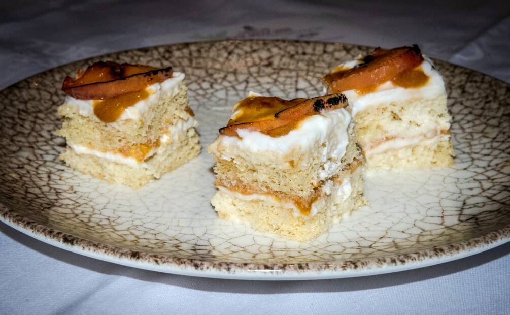 - Tres leches de especias con compota de duraznos rostizados, chef Mane Rivera.