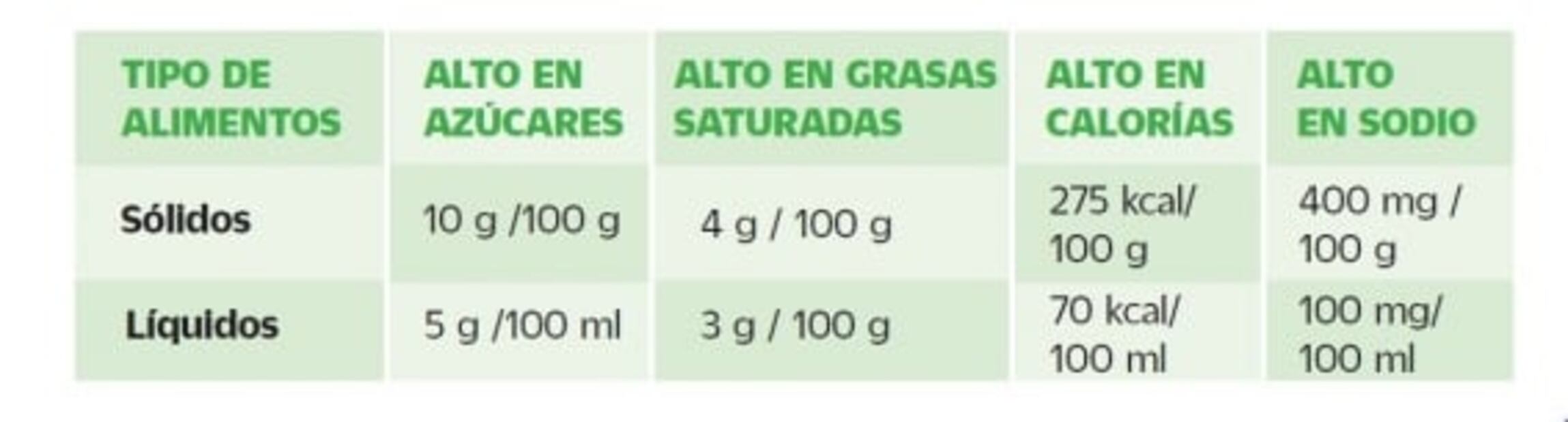 La Secretaría de Salud debe especificar las particularidades de la nueva disposición. Independientemente de cualquier tipo de etiquetado frontal, todos los alimentos y bebidas procesados deberán portar una tabla nutrimental en la parte posterior del producto,en base a las especificaciones de la Norma Oficial Mexicana NOM-051-SCFI/SSA1-2010, la cual debe incluir el contenido total de kilocalorías, proteínas, hidratos de carbono, azúcares, fibra, grasa total, grasa saturada y sodio.
