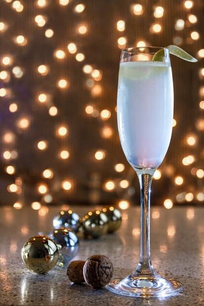 el prosecco. Decora con una rodaja de limón y unas hojitas de hierbabuena.