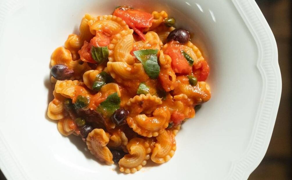 Recomendación: Pacherri con jitomate fresco, aceitunas taggiasca y albahaca.