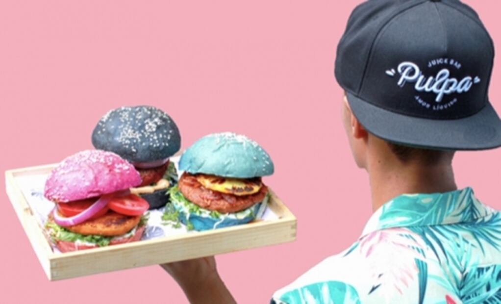 Se trata de las Color Veggie Burgers de Pulpa Amor Líquido , hamburguesas veganas con el pan teñido de colores.