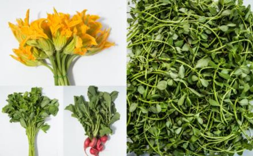2. Decora con una ramita de huauzontle crujiente y la ensalada de verdolaga con un poco de chiles encurtidos.