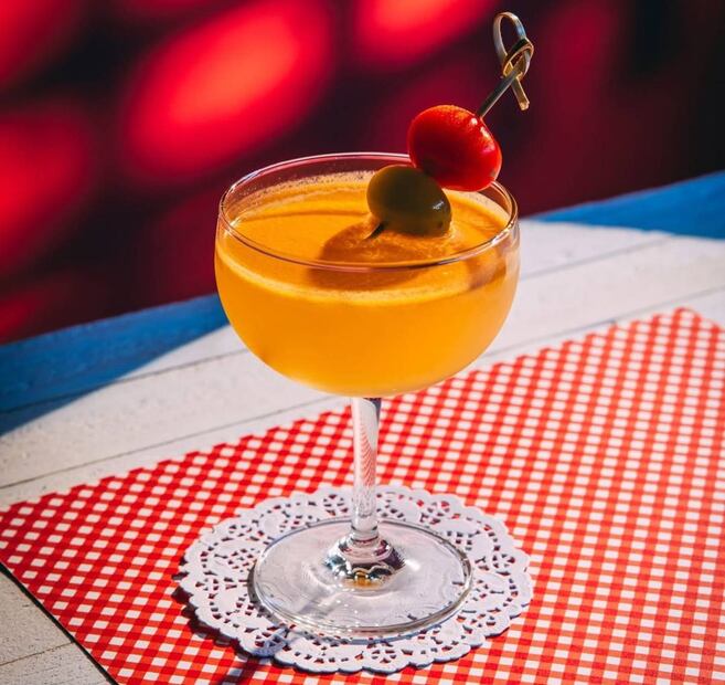 - Pizza House Party: un trago que sabe a una pizza de queso; lleva Gin Mare, Ron Agrícola, jarabe de queso parmesano, tomate, jugo de limón, licor de chile poblano y licor de Accompani Flora Green.