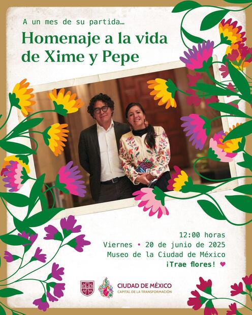 A un mes del asesinato de Ximena Guzmán y José Muñoz, la Secretaría de Planeación, Ordenamiento Territorial y Coordinación Metropolitana, encabezada por Alejandro Encinas, anunció un homenaje en su memoria. El evento se llevará a cabo este viernes 20 de junio en el Museo de la Ciudad de México, según dio a conocer el funcionario a través de su cuenta oficial en X.