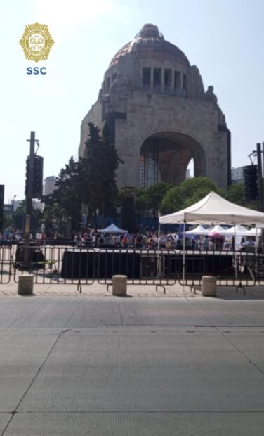 Concentración de manifestantes en inmediaciones del Monumento a la Revolución, sin afectar vialidad.