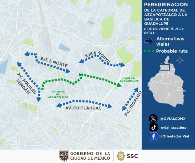 Se prevé peregrinación a las 08:00 horas, que partirá de la catedral de Azcapotzalco rumbo a la Basílica de Guadalupe.