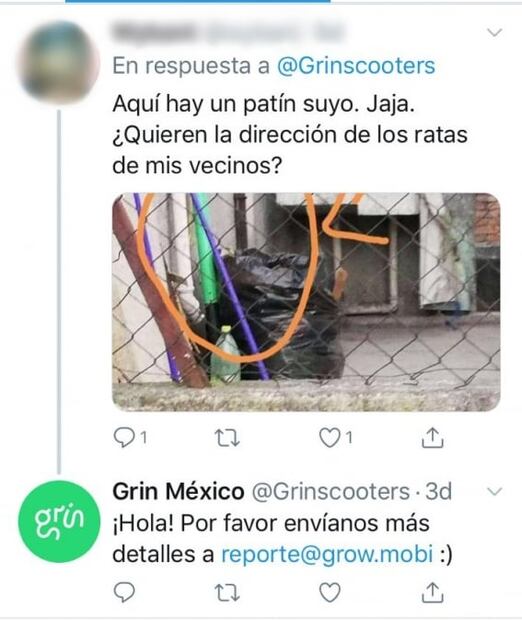 Comentó que la empresa está muy conmovida con el apoyo y denuncias que han recibido por parte de los usuarios, pues muchos de ellos comenzaron a denunciar el hallazgo de unidades en domicilios particulares o en calles de colonias en las que ni siquiera había cobertura de Grin.