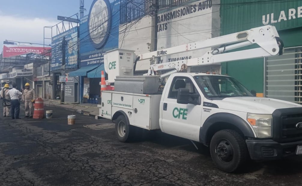 En el lugar laboran vulcanos y elementos de Rescate Urbano para retirar láminas en riesgo de desprenderse y evitar mayores riesgos, mientras que personal de la Comisión Federal de Electricidad se encarga de desactivar los cables de alta tensión sobre los cuales cayó parte de la estructura.