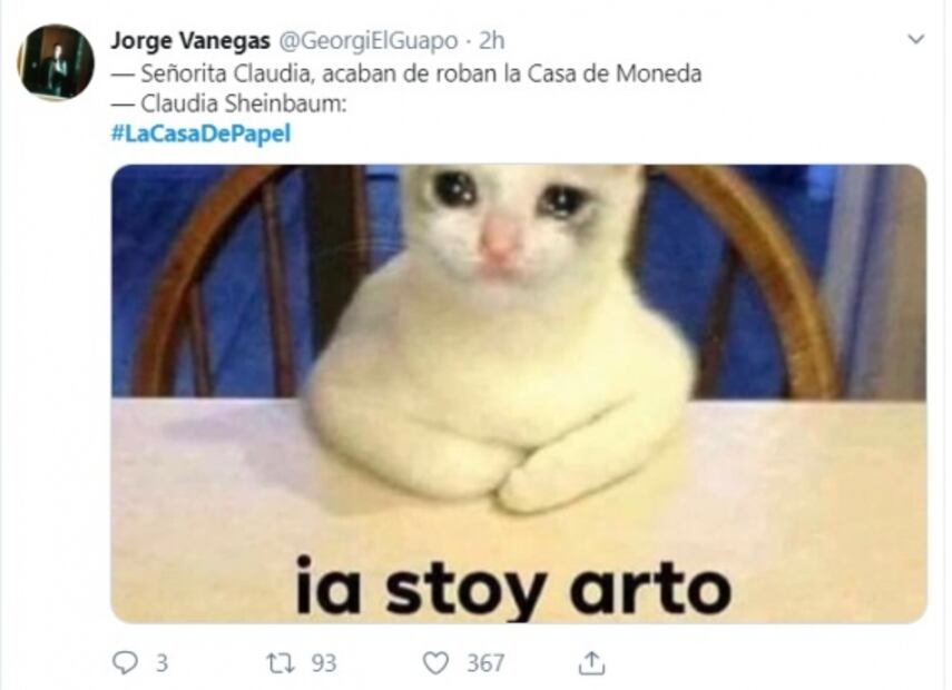 “Los productores de #LaCasaDePapel viendo que gracias al asalto de La Casa de Moneda tienen publicidad gratis...”, escribió un usuario identificado con el nombre de @Patan_Principe, adjuntando un gif de Itati Cantoral en su personaje de Soraya Montenegro .