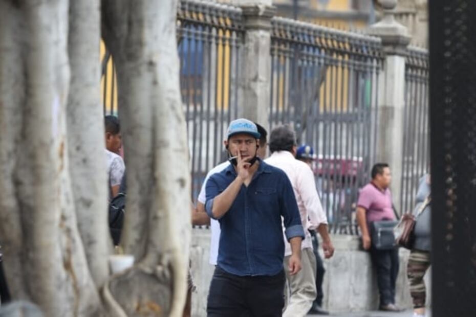 Fue sobre Madero y Gante en donde un sujeto fumaba; ahí permaneció, hasta que un policía le pidió -moviendo la mano- que se hiciera atrás, sobre una maceta.