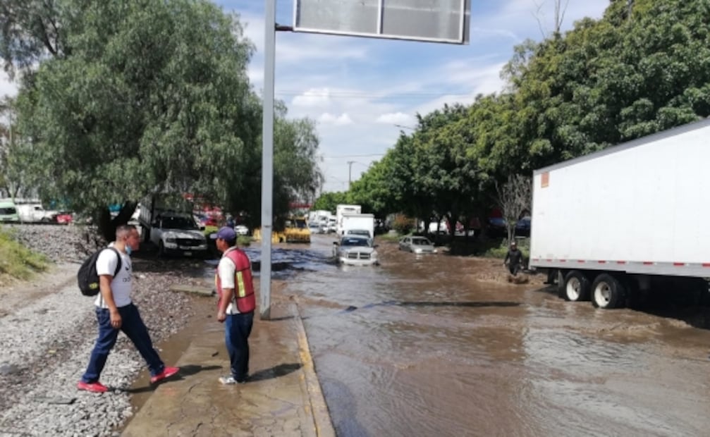 Tal es el punto de Avenida Central y Ampliación Periférico, justo en Río de los Remedios, donde el encharcamiento de agua provoca el embotellamiento en la zona , lo cual se conplica debido a que algunos vehículos quedaron atrapados en la inundación.