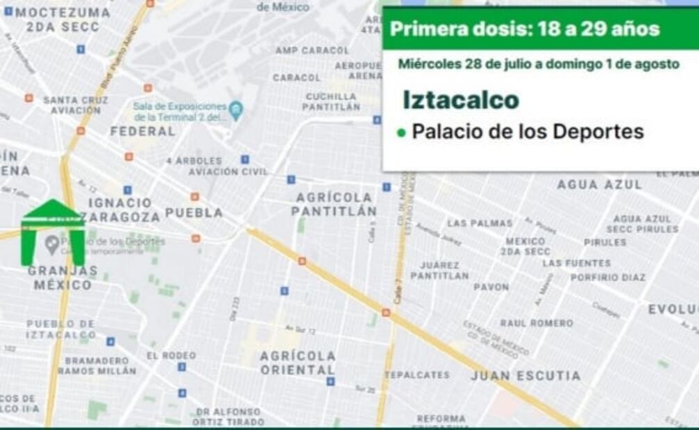 A partir de este miércoles y hasta el 1 de agosto se aplicará la vacuna contra el Covid-19 a personas de 18 a 29 años de edad residentes de Iztacalco.
