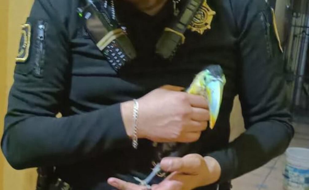 Un tucán piquiverde en peligro de extinción fue rescatado por elementos de la Secretaría de Seguridad Ciudadana (SSC) de un predio en la alcaldía Iztapalapa. Se desconoce cómo llegó hasta ahí.