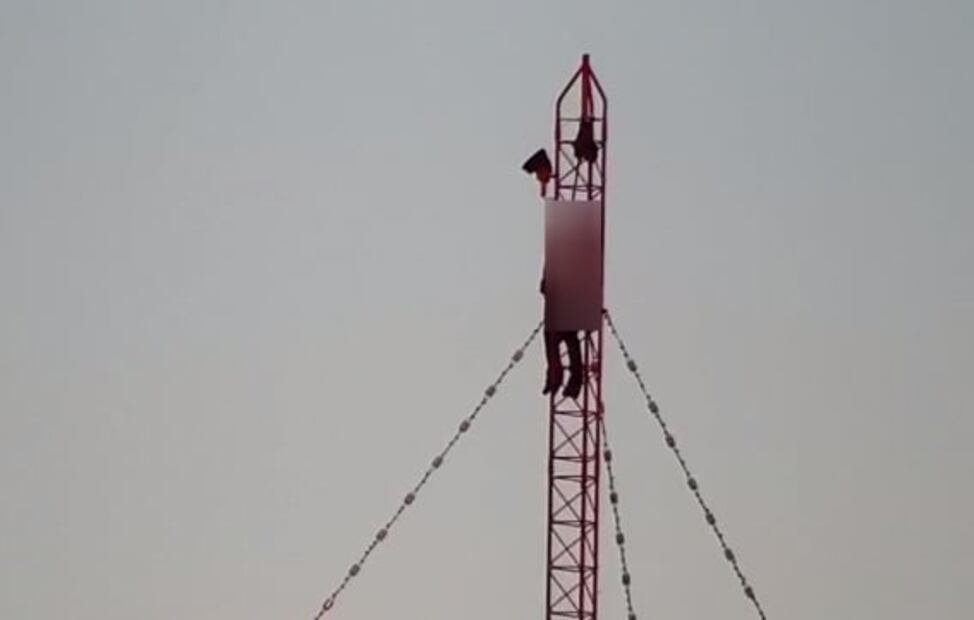 El hombre habría participado en el robo de una camioneta, de la cual descendió para prender fuego al vehículo y después ingresó a un predio baldío aledaño al lugar, donde escaló una torre de Comunicaciones de 50 metros de altura llegando hasta lo alto.