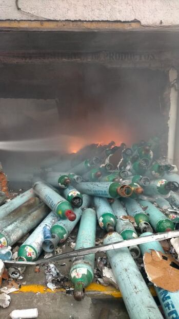 El departamento de bomberos también difundió una imagen de los tanques de oxígeno, algunos de ellos en llamas.