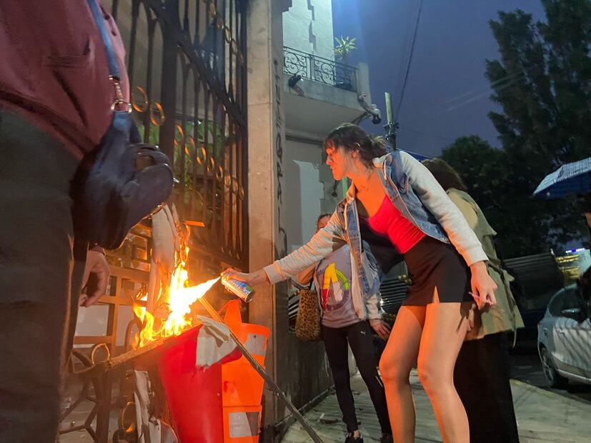 También se reportaron actos de protesta como la quema de ropa, destrozos de señalamientos viales, de una cámara de videovigilancia, así como pintas en las paredes y ruptura de cristales en el inmueble.