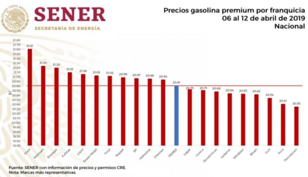 De acuerdo con Pemex, la mayoría de las compañías que venden gasolinas respetan los precios que Pemex ha puesto de manera general.