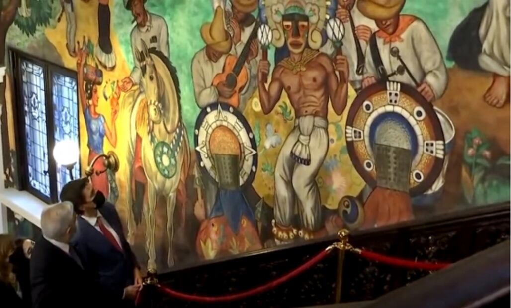 Tras recibirlo, el presidente de México le mostró los murales del artista mexicano Roberto del Río que se encuentran en el Instituto. Después, estrecharon sus manos previo a la reunión bilateral a un costado las banderas de México y Canadá.