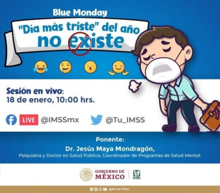 Ante ello y para eliminar esa pseudociencia detrás del "Blue Monday", el Instituto Mexicano del Seguro Social (IMSS) es contundente este año y afirma que el día más triste del año no existe.